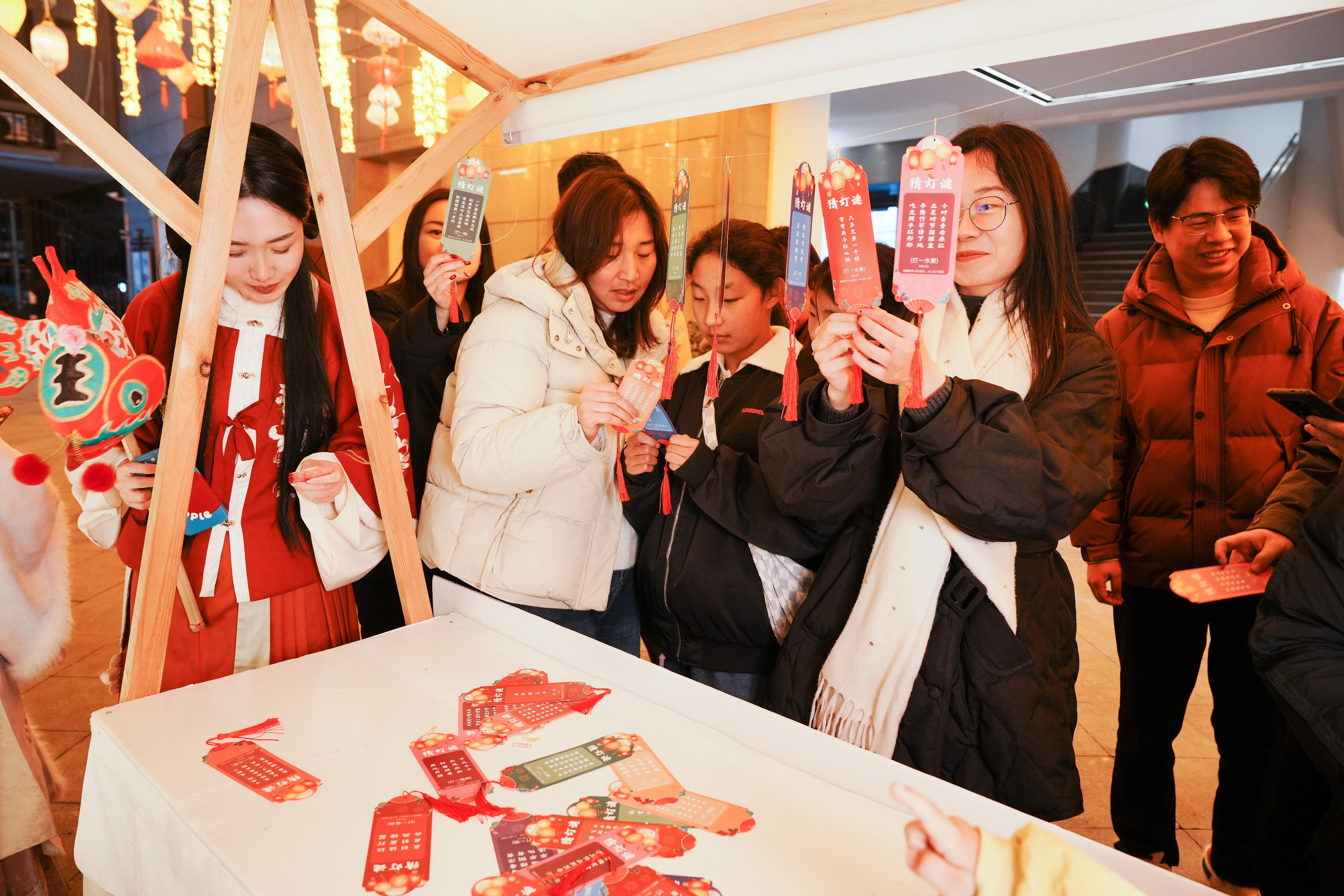 元宵的吵杂,藏在盐博的盏盏花灯里。盐韵阛阓被花灯装点得特出时髦,诗灯相映的配景既连续了“赏花灯、闹良宵”的传统习俗,又融入了文博场馆的文化底蕴,成为节日氛围最浓郁的区域。“元宵飞花令”现场,不雅众们在诗词交锋中感受言语文化的魔力;“文虎竞猜”区则藏满巧念念,谜题兼顾兴味性与学问性,既有传统民风执行,也融入了盐博馆藏学问,公众藏身念念索、彼此磋商,于方寸谜题间成绩意趣盎然。