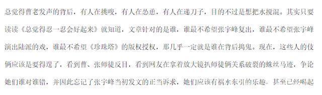 是的,这其实小孩子皆昭着的料想,为何会被一些东说念主拿出来大作念著作? 关联词,令我没猜想的是,曹银娣真挚的“声明”发出来之后,又激勉出一场巨大的争议。 有的说“曹真挚早该站出来证实情况了”。 但也有的说,曹真挚选拔这个时候发声,岂不是让也曾的门徒张宇峰愈加“雪上加霜”? 还有的说,曹真挚是被东说念主应用了,是有东说念主在“递刀子”。