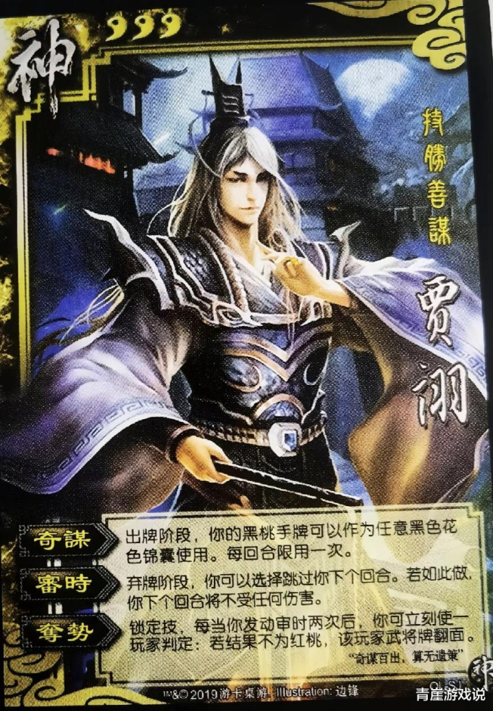 二本事【审时】,以失去一个回合的代价,取得金身下一趟合。这本事代价额外大,毕竟神贾诩必须进回合才气用【奇谋】,如果发动【审时】,也就意味着我方被翻了面!