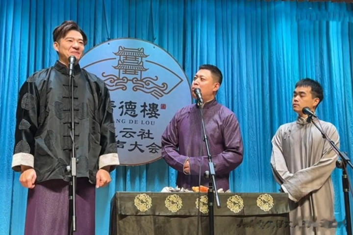 2月8日,德云社谢金、李鹤东、尚筱菊在广德楼午场攒底位置,为不雅众带来作品《扒马褂》。