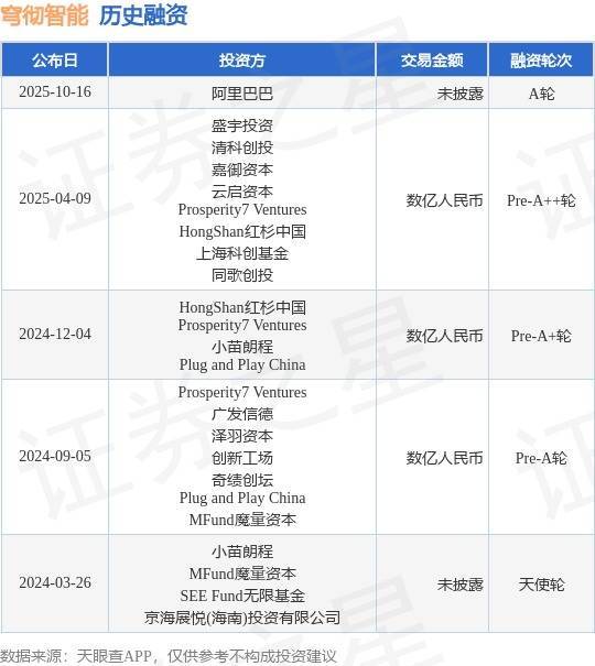 证券之星音讯,阐明天眼查APP于10月16日公布的信息整理,上海穹彻智能科技有限公司A轮融资,融资额未表示九游会体育,参与投资的机构包括阿里巴巴。